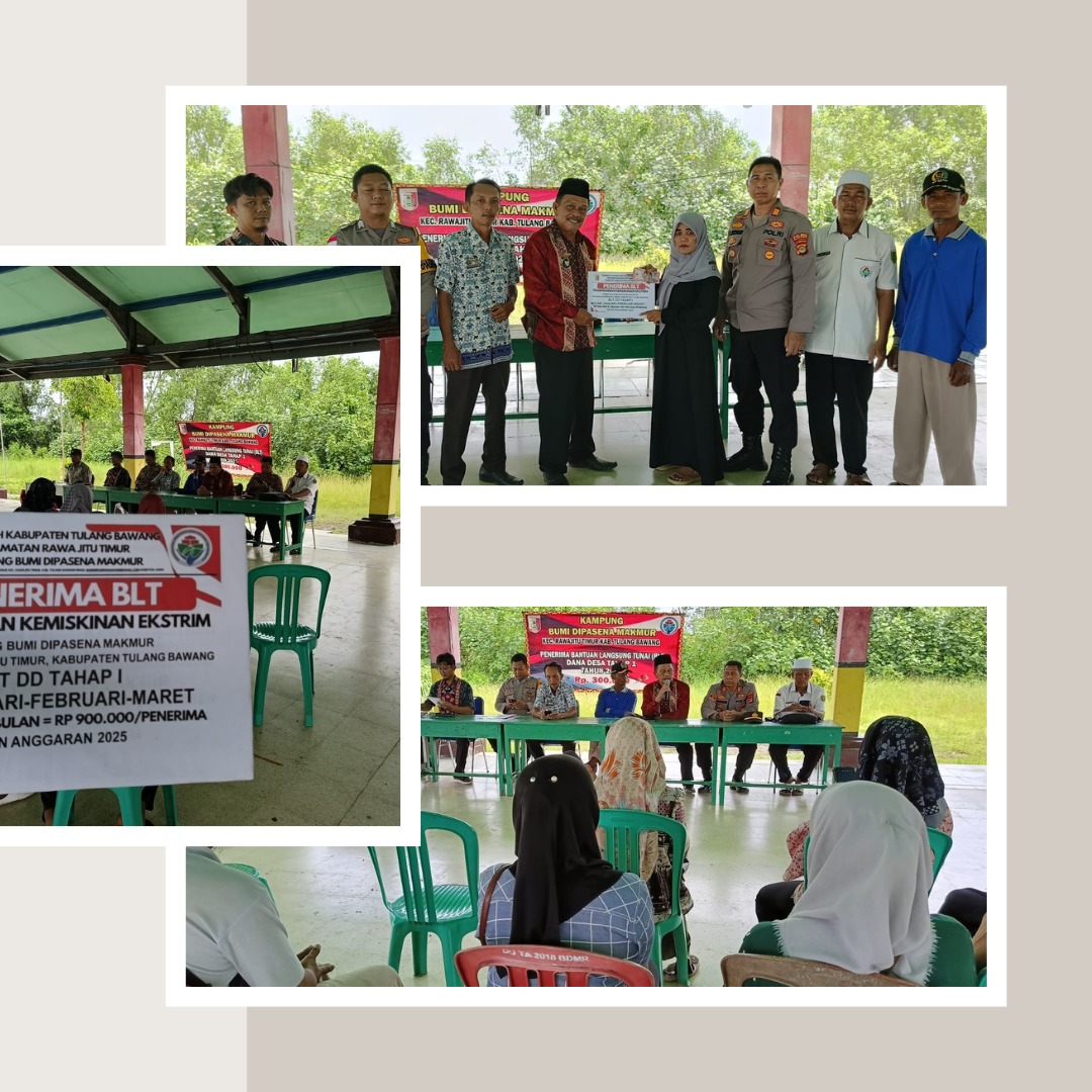 Hariannaskah, Tulang Bawang- Pemerintah Kampung Bumi Dipasena Makmur, Kecamatan Rawa Jitu Timur, telah menyalurkan kepada 12 keluarga penerima manfaat (KPM), Bantuan Langsung Tunai Dana Desa (BLT DD) tahap pertama untuk tahun 2025, Kamis 27 Maret 2025.