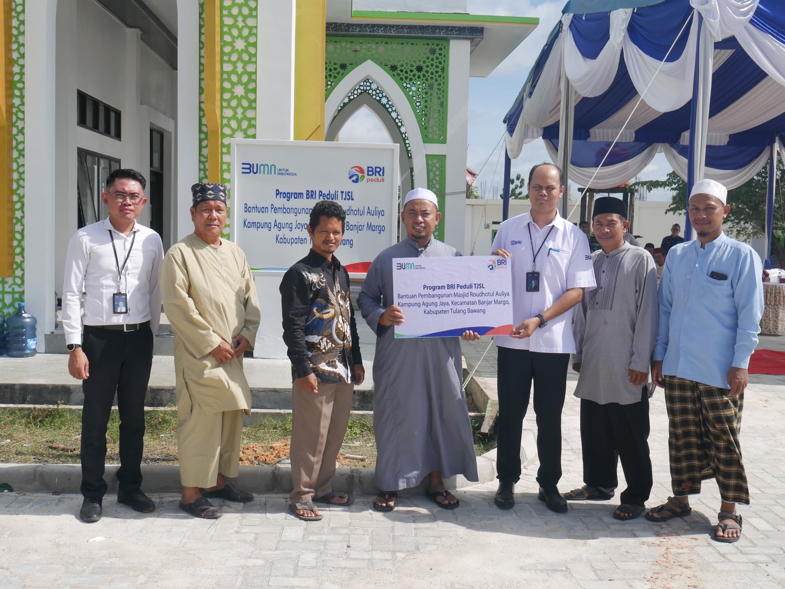 Branch Office Head BRI Tulang Bawang, Fuadi, mengatakan, bahwa bantuan pembangunan Masjid Rudhotul Auliya, Kampung Agung Jaya, Kecamatan Banjar Margo, Tulang Bawang yang diberikan oleh BRI Tulang Bawang merupakan wujud nyata BRI Peduli untuk pembangunan Masjid yang ada di Kabupaten Tulang Bawang.