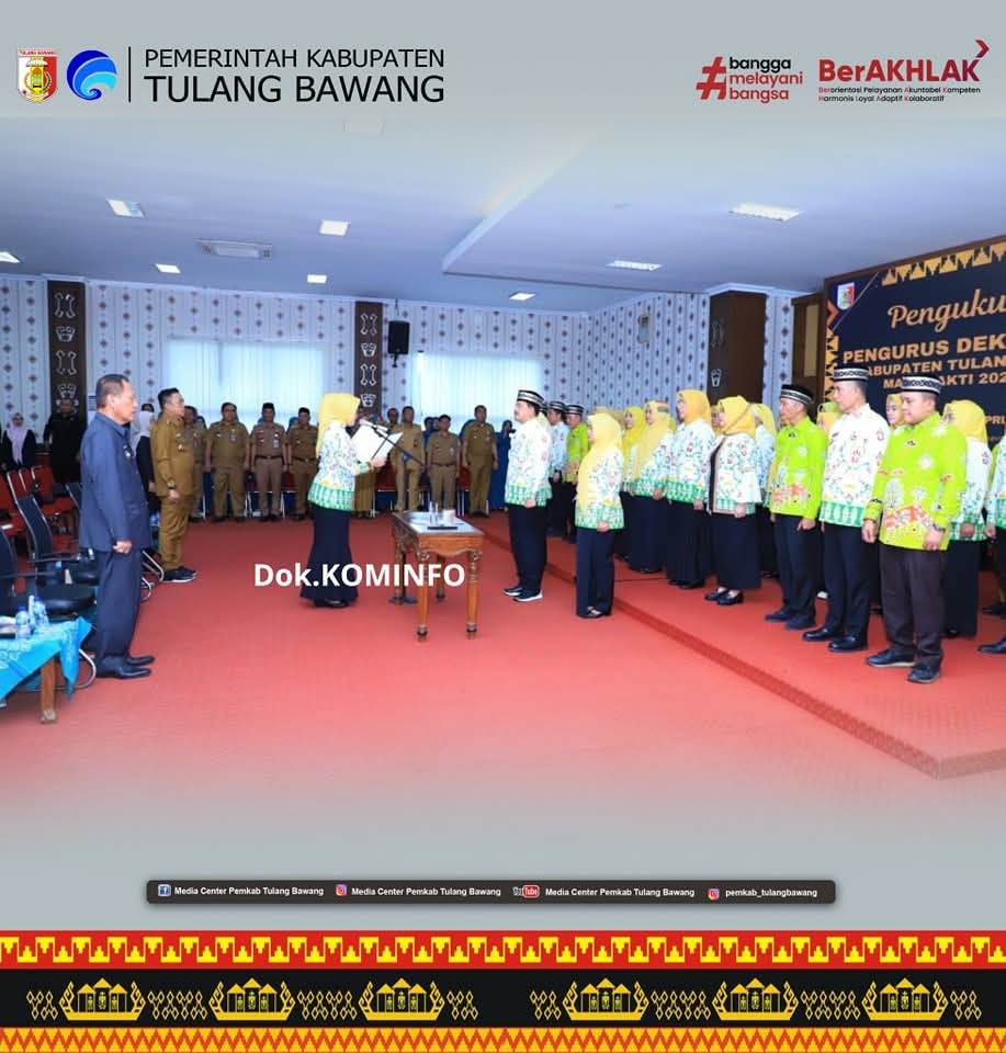 Hariannaskah, Tulang Bawang- Bupati Tulang Bawang, Qudrotul Ikhwan secara resmi melantik dan mengukuhkan pengurus Dekranasda Kabupaten Tulang Bawang periode 2025-2030, di ruang rapat utama lantai II kantor Bupati setempat, pada Selasa (15/04/2025).