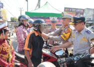 Satlantas Polres Tulang Bawang Bagikan Puluhan Helm Gratis