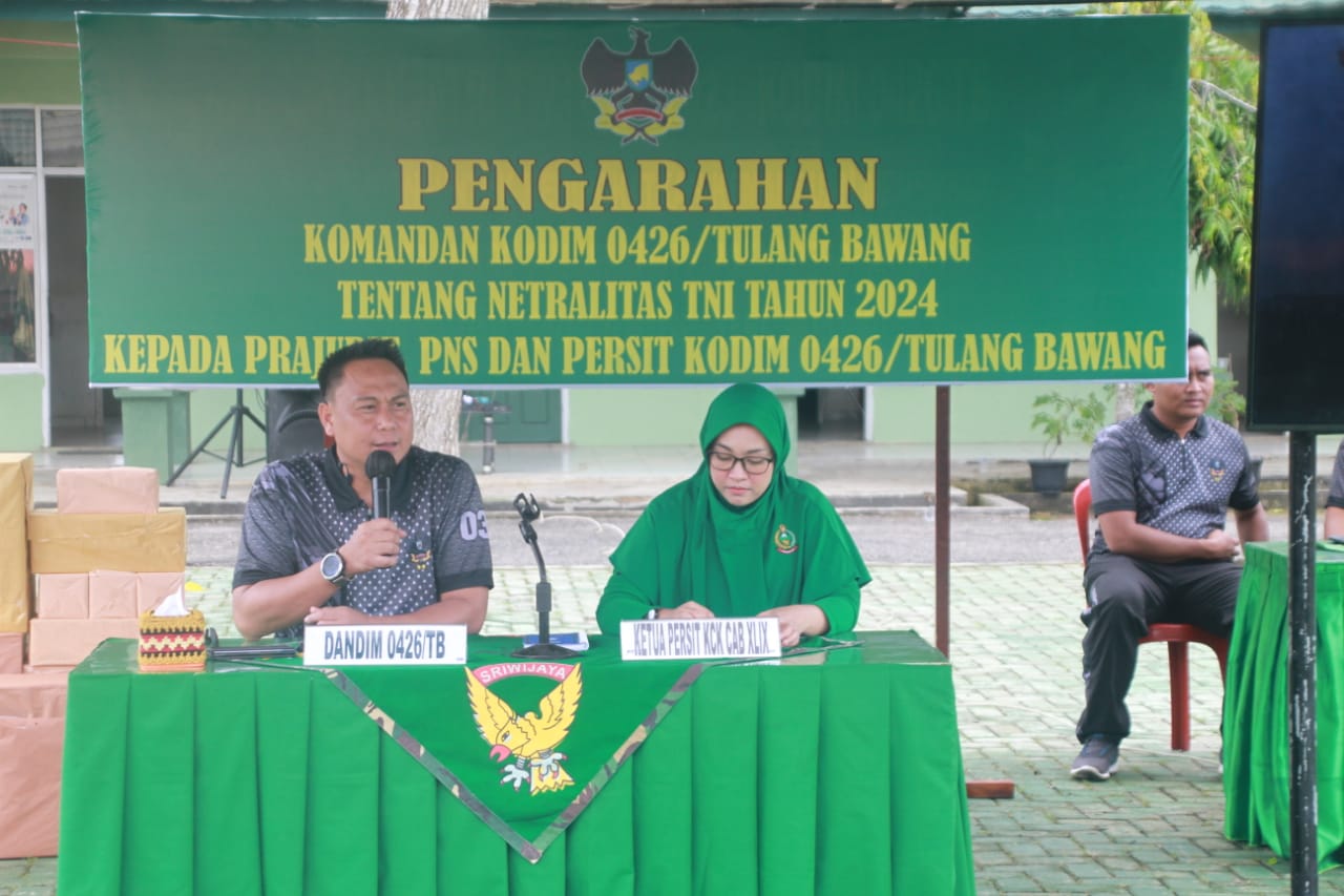 Dalam pengarahan Dandim 0426 Tulang Bawang, terkait dengan netralitas TNI pada Pemilu 2024 yang akan datang. Kegiatan ini pun, sebenarnya bukan hal yang pertama. Namun telah dilakukan berkali- kali agar lebih jelas tentang netralitas yang ditekankan.
