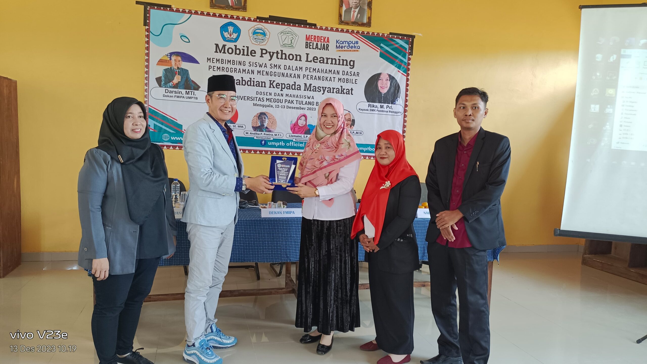 Tulang Bawang, Harian Naskah-Pengabdian kepada dunia pendidikan serta masyarakat para dosen dan mahasiswa lintas fakultas, Universitas Megou Pak Tulang Bawang (UMPTB) melaksanakan giat ke SMK Pembina Menggala, Rabu (13/12/20223).