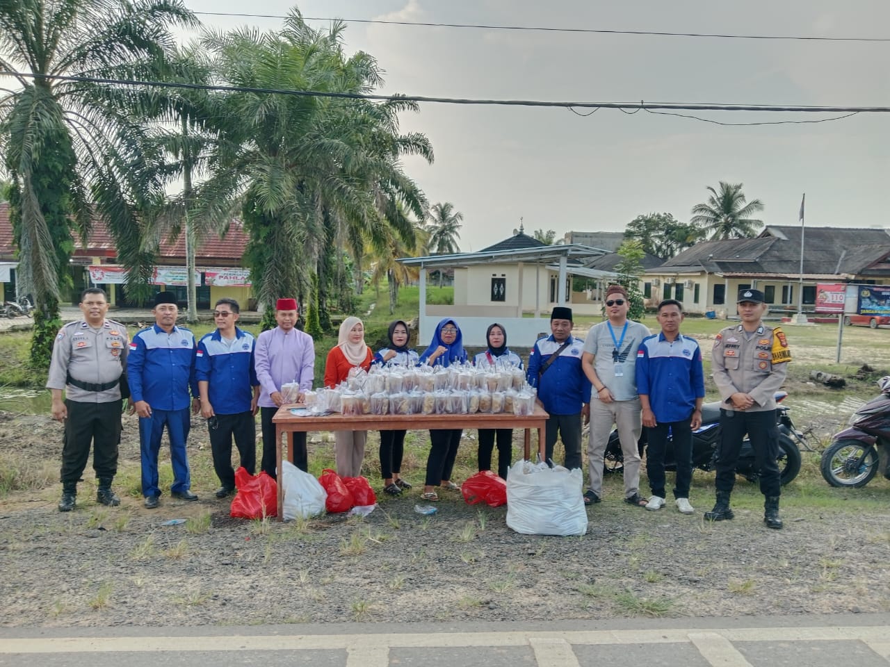 Harian Naskah- Jajaran Pengurus Lembaga Bantuan Hukum Bintang Sembilan Nusantara (LBH BSN) Tulangbawang bersama Jajaran Polsek Rawajitu Selatan, juga Jajaran Kecamatan Rawa Jitu Selatan, melaksanakan kegiatan berbagi takjil yang digelar di jalan Lintas Rawajitu Selatan, depan kantor Polsek Rawa Jitu Selatan, Rabu 11 Maret 2026.