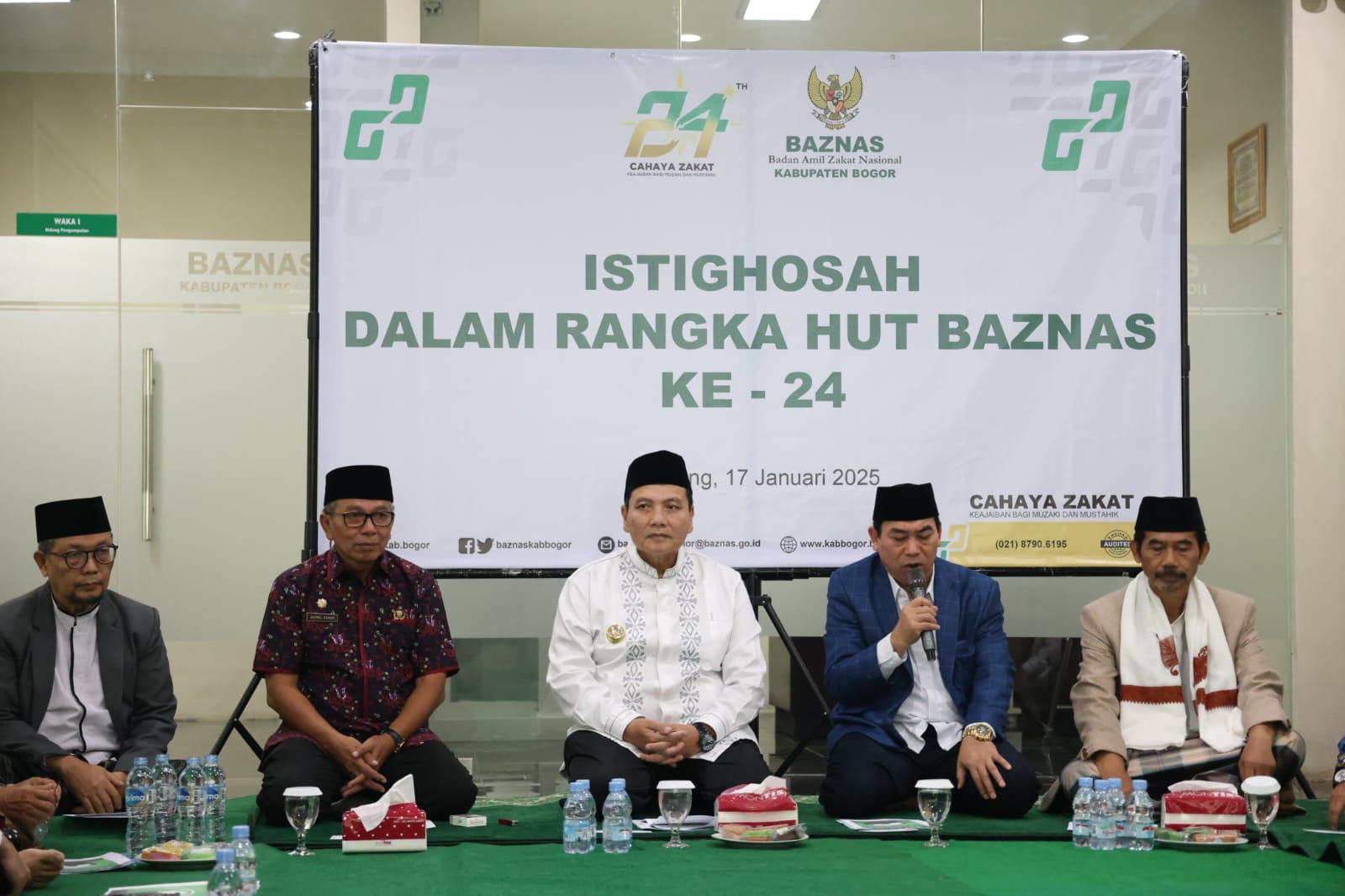 Hadir Ketua Baznas Kabupaten Bogor beserta jajarannya, Ketua MUI Kabupaten Bogor, perwakilan Kantor Kementerian Agama Kabupaten Bogor, Asisten Pemerintahan dan Kesejahteraan Rakyat (Aspemkesra), dan jajaran Pemkab Bogor. Kegiatan diisi dengan tasyakuran dan istighosah.
