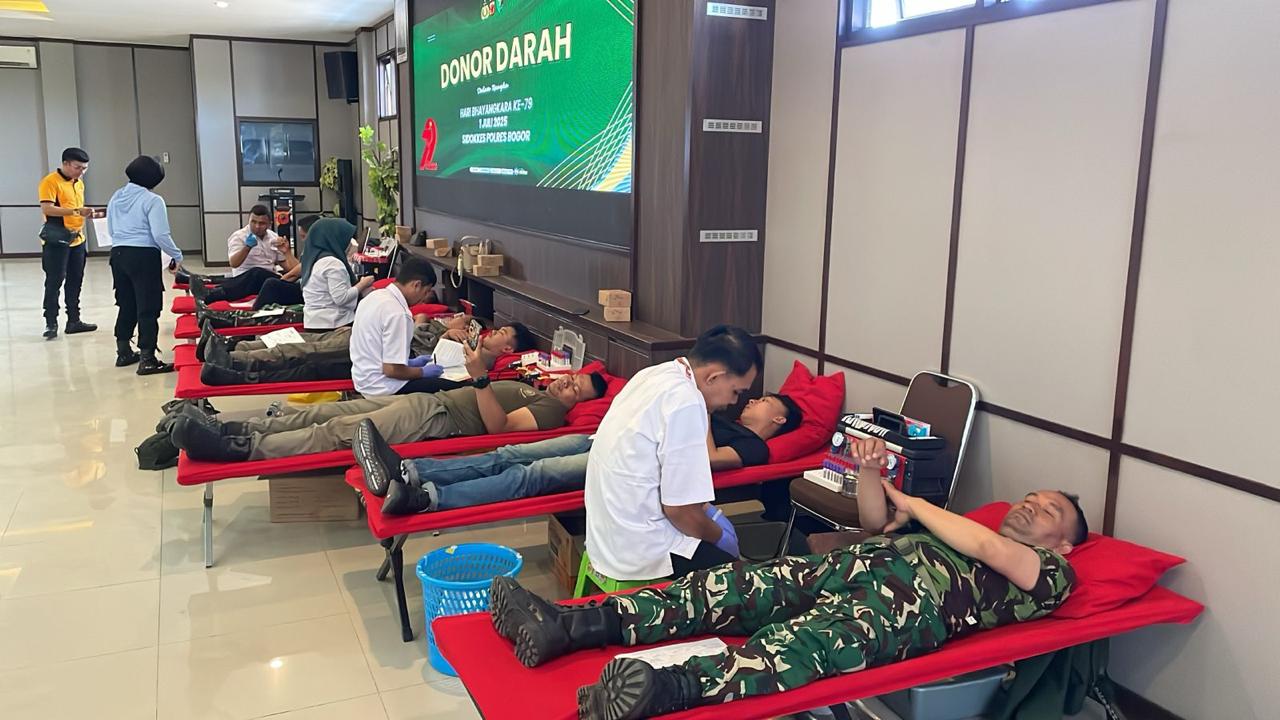 Kegiatan donor darah yang dimulai sejak pukul 08.00 WIB berlangsung lancar dan mendapat sambutan antusias dari personel Polres Bogor dan masyarakat sekitar.