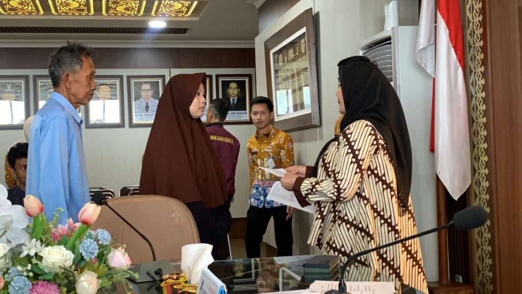 Rintan Putri (23), warga Kelurahan Segala Mider, tampak berjalan perlahan memasuki ruang rapat Wali Kota Bandar Lampung. Mengenakan gamis hitam, membawa tas selempang cokelat dan menenteng tas hijau berisi dokumen, raut wajahnya memancarkan harapan di tengah ujian berat yang sedang dialami keluarganya.