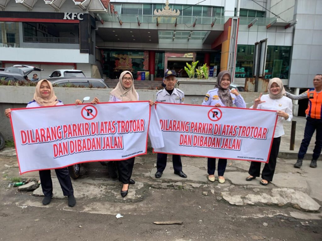 Harian Naskah- Dinas Perhubungan (Dishub) Kota Bandar Lampung bersama Satuan Lalu Lintas (Satlantas) Polresta Bandar Lampung melakukan penertiban parkir liar di kawasan trotoar depan Candra Superstore, Jalan Pemuda, Kecamatan Tanjung Karang Timur, Kamis (12/2/2026).