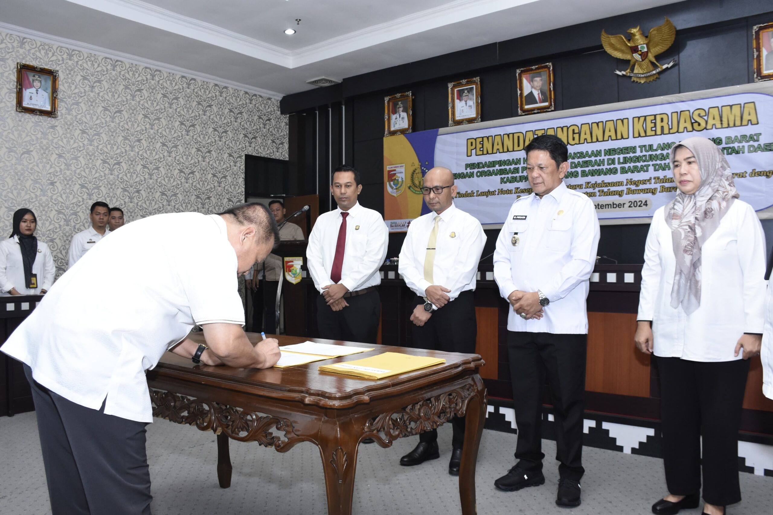 Hariannaskah, TUBABA- Para Kepala Organisasi Perangkat Daerah (OPD) Pemerintah Kabupaten Tulang Bawang Barat (Tubaba) menandatangani Rencana Kerja dengan Kejaksaan Negeri setempat.