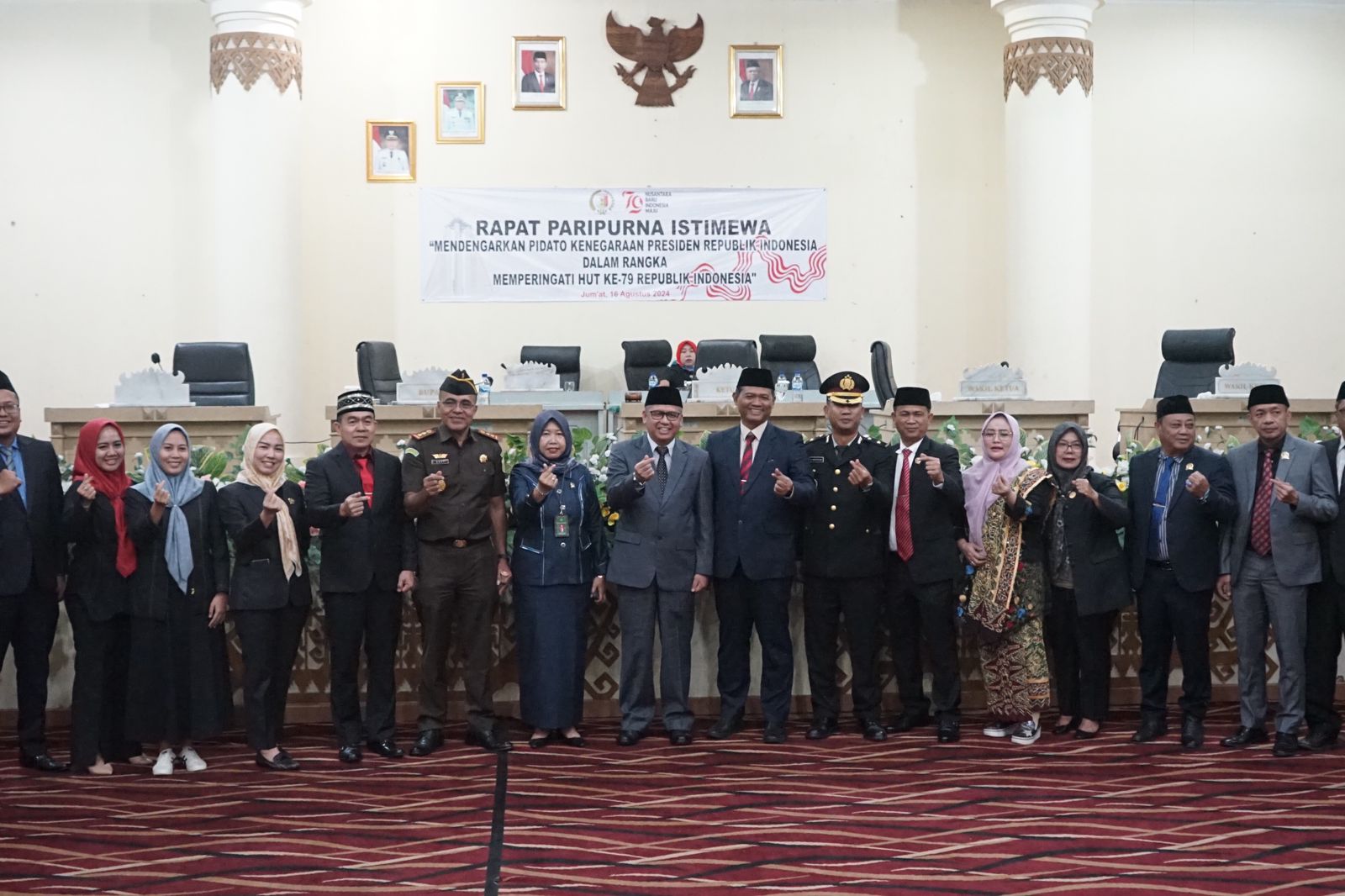 Hariannaskah, TUBA- Pj. Bupati Tulang Bawang, Ferli Yuledi, SP., MM., MT., mengikuti sidang Paripurna Istimewa DPRD Tulang Bawang dan mendengarkan pidato Kenegaraan Presiden RI dalam rangka memperingati HUT Kemerdekaan RI Ke – 79 tahun 2024, diruang rapat paripurna, Jum’at (18/8/24).