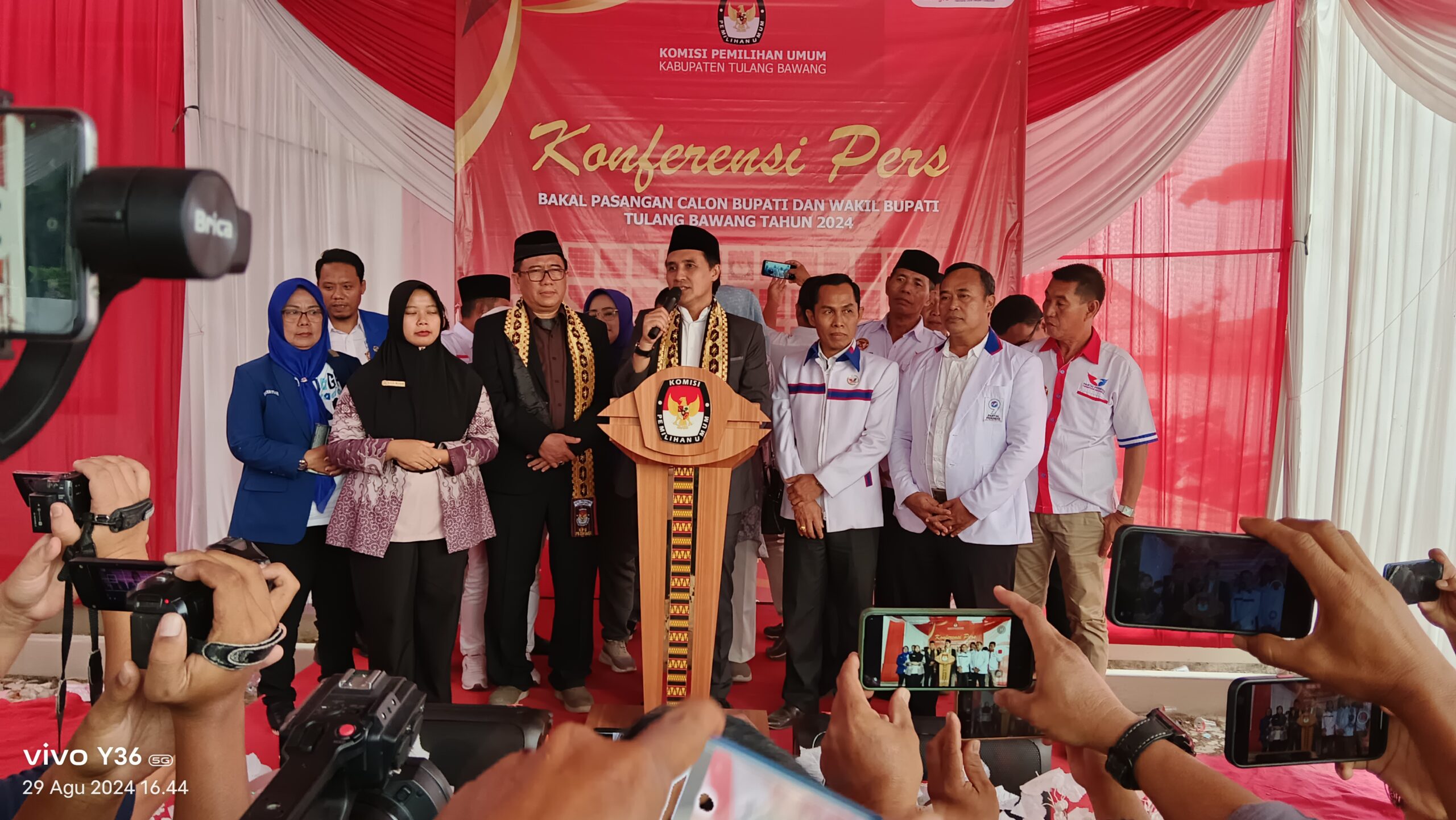 Paslon Hendriwansyah – H. Danial Anwar menjadi pasangan terakhir yang mendaftarkan diri dalam Pemilihan Kepala Daerah (Pilkada) Kabupaten Tulang Bawang tahun 2024.