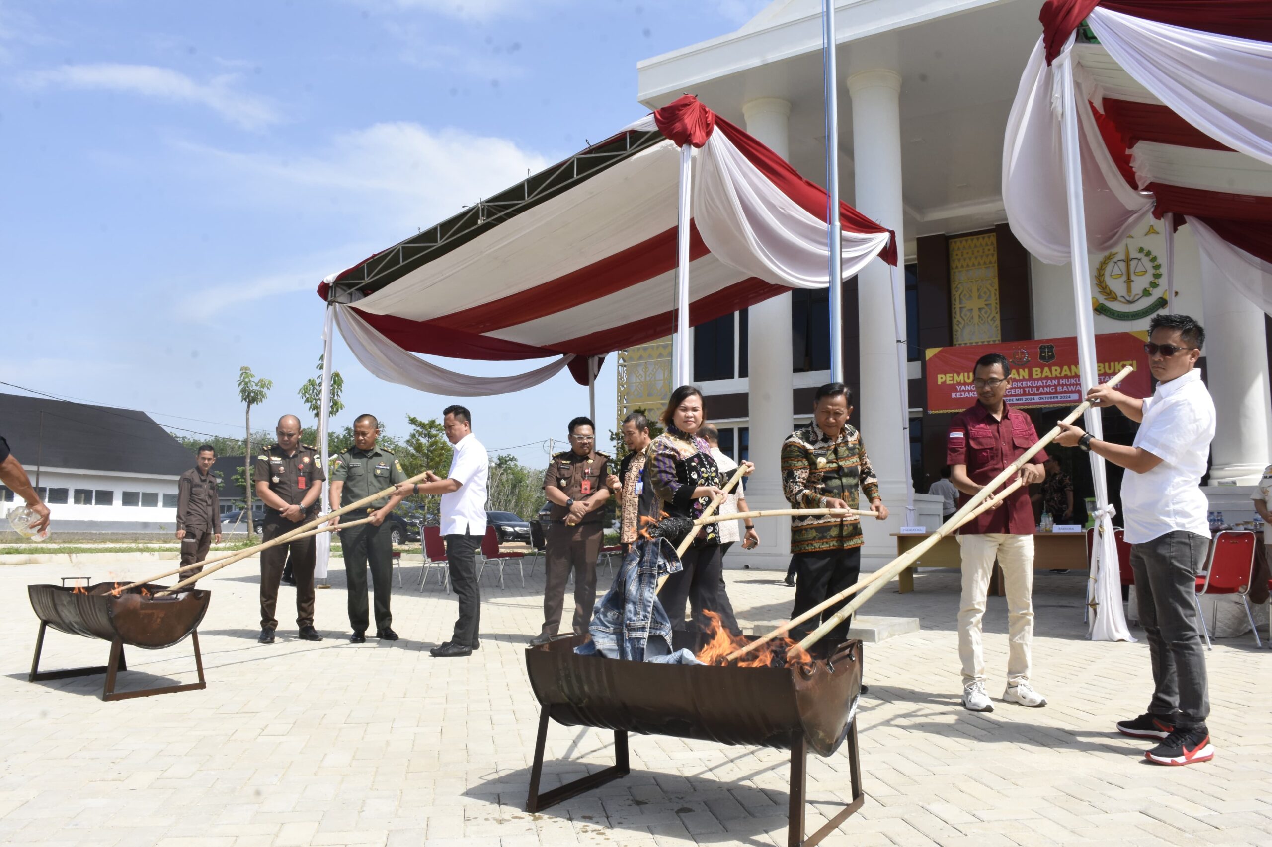 “Kegiatan ini bertujuan untuk menyelesaikan perkara tindak pidana terhadap benda sitaan dan barang bukti yang dalam putusan pengadilan dirampas untuk dimusnakan secara tuntas dan optimal yang dilakukan melalui mekanisme pemusnahan dengan cara dibakar, dihancurkan sehingga barang- barang tersebut tidak lagi dapat digunakan untuk kejahatan,” tambahnya.