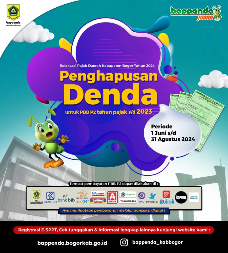 Penghapusan Denda, untuk PBB P2 tahun pajak s/d 2023. Periode bayar 1 Juni – 31 Agustus 2024.