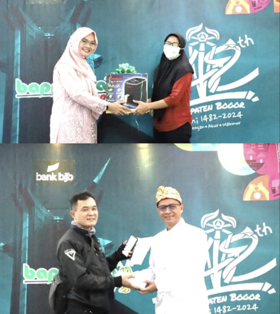 Penyerahan Sovenir dan Doorprize oleh Para Pimpinan Bappenda Kabupaten Bogor kepada Wajib Pajak yang mendapatkannya.