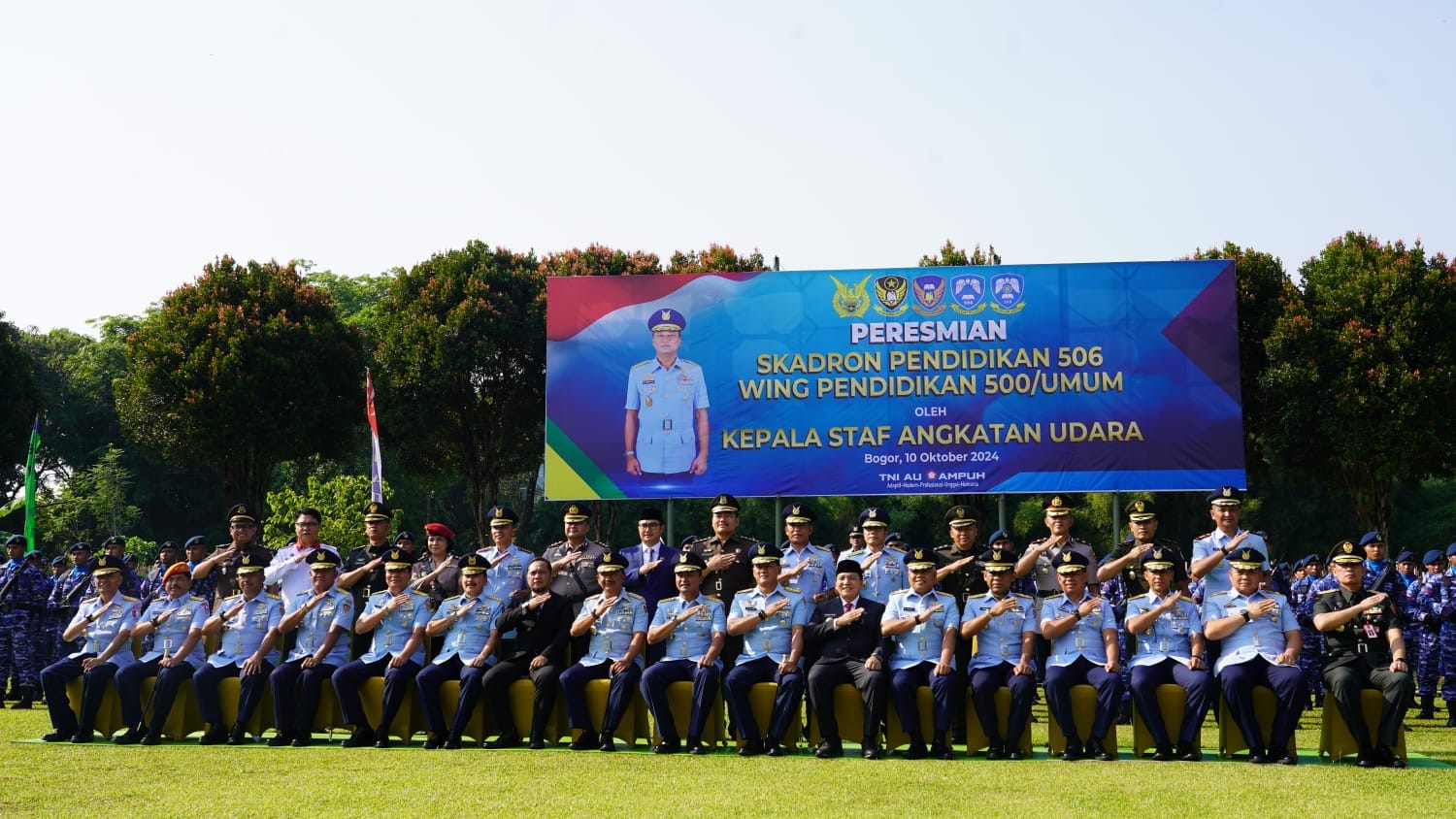 Harian Naskah- Pj. Bupati Bogor, Bachril Bakri menghadiri upacara peresmian Skadron Pendidikan (Skadik) 506 Wing Pendidikan (Wingdik) 500 / Umum. Upacara berlangsung di Lapangan Nawa Tunggal Wingdik 500/Umum, Kecamatan Kemang, Kamis (10/10/24).