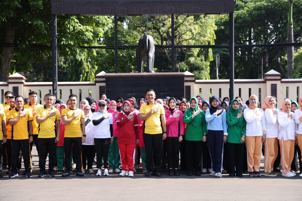 Harian Naskah, BOGOR- Pj. Ketua Tim Penggerak Pemberdayaan Kesejahteraan Keluarga (TP PKK) Kabupaten Bogor, Siti Chomzah Asmawa mengikuti olahraga bersama dalam rangka Hari Kesatuan Gerak Bhayangkari (HKGB) ke -72 tahun 2024, di halaman Polres Bogor, Cibinong, Sabtu (14/9).