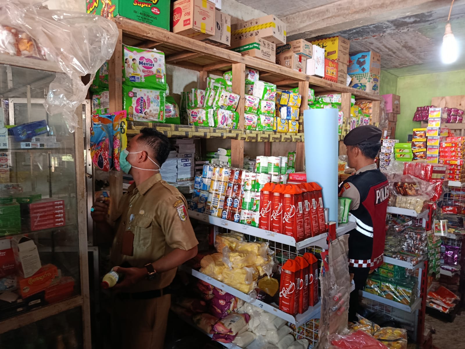 Tim gabungan yang terdiri dari unsur pemerintahan Kecamatan, Puskesmas, dan Kepolisian Polsek Rawa Jitu Selatan Polres Tulang Bawang menemukan sejumlah makanan, minuman, dan barang lainnya yang telah kadaluarsa maupun dalam kondisi tidak layak jual, seperti minuman botol dan kaleng yang penyok atau rusak.