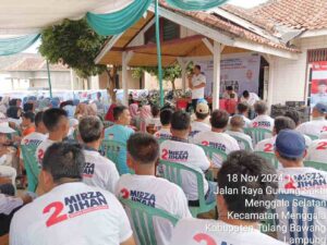 Andri WK, menambahkan yai Mirza merupakan kader pilihan dari partai Gerindra yang dipimpin bapak Presiden Prabowo Subianto. Jadi kita semua yang hadir harus memberikan dukungan penuh demi kemenangan Mirza-Jihan untuk memimpin bersama Lampung Maju.