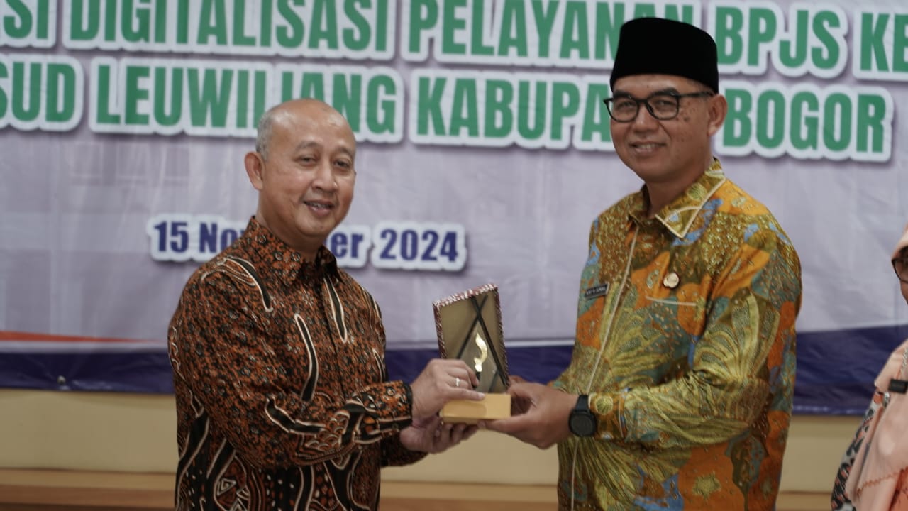 Harian Naskah, BOGOR- Bukti nyata dari komitmen RSUD Leuwiliang dalam memberikan pelayanan kesehatan terbaik bagi masyarakat, Rumah Sakit Umum Daerah (RSUD) Leuwiliang, Kabupaten Bogor, berhasil meraih penghargaan tertinggi Bintang 5 dari Badan Penyelenggara Jaminan Sosial (BPJS) Kesehatan. Penghargaan diberikan langsung oleh Direktur Teknologi Informasi BPJS Kesehatan, Edwin Aristiawan kepada Direktur RSUD Leuwiliang, dr. Vitrie Winastri disaksikan langsung oleh Sekretaris Daerah (Sekda) Kabupaten Bogor, Ajat Rochmat Jatnika di Aula Utama RSUD leuwiliang, Jumat (15/11/24).