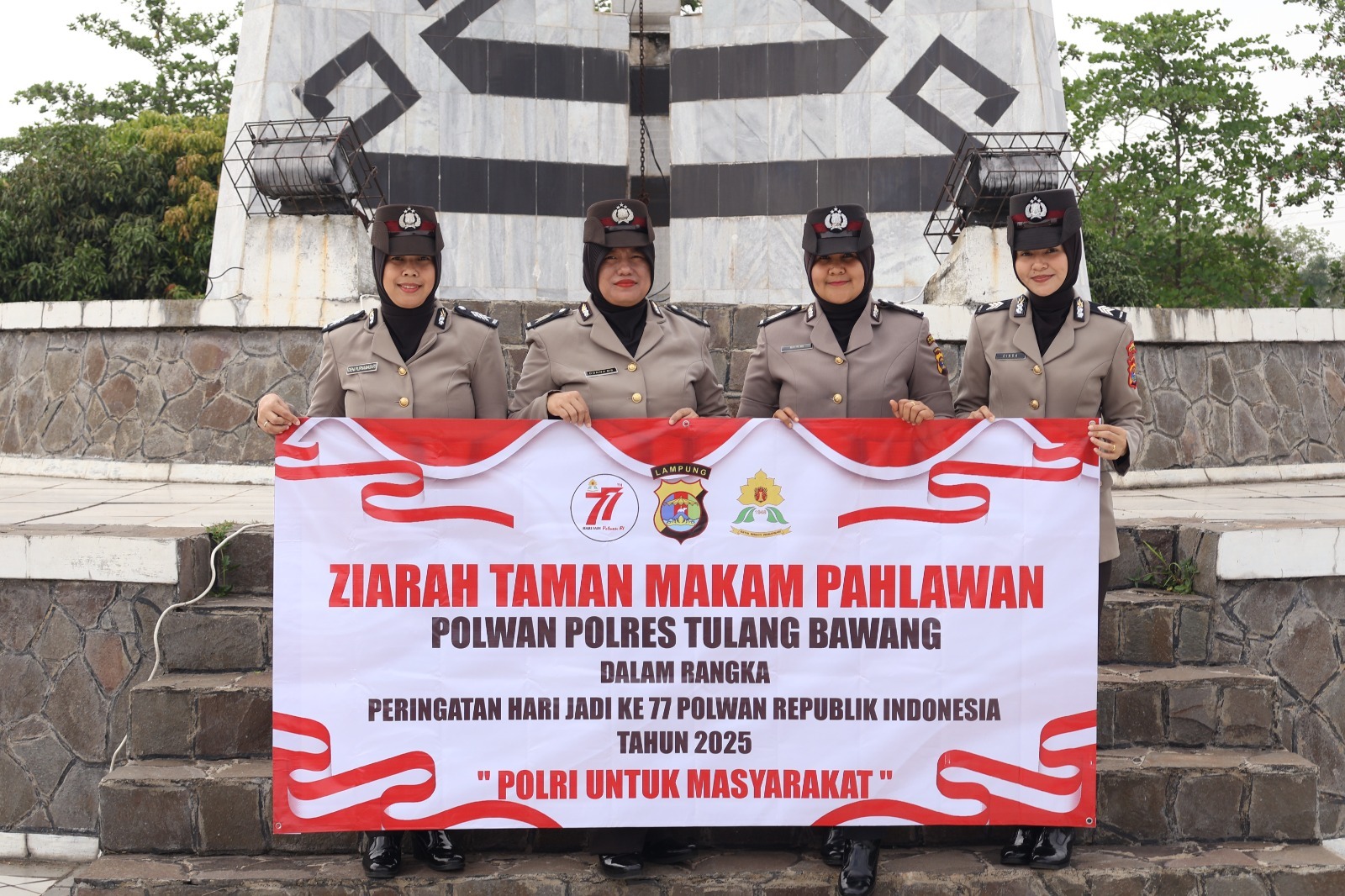 “Hari ini, kami seluruh personel Polwan Polres Tulang Bawang menggelar ziarah dan tabur bunga di TMP Tiuh Tohou,” ucap Bripka Deni Purnama Sari, SH, selaku Polwan senior.