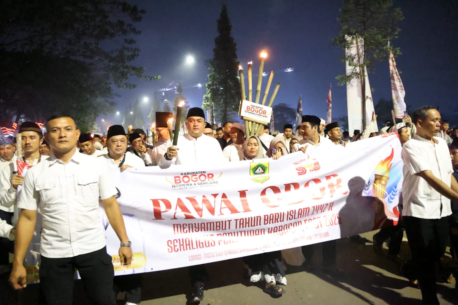 “Pawai obor ini kita maknai sebagai simbol perjuangan, semangat hijrah Rasulullah yang menginspirasi kita untuk membangun Kabupaten Bogor yang lebih baik. Momentum ini menjadi ajang kebangkitan, baik dari sisi spiritual, sosial, maupun pembangunan,” ujar Bupati Bogor.