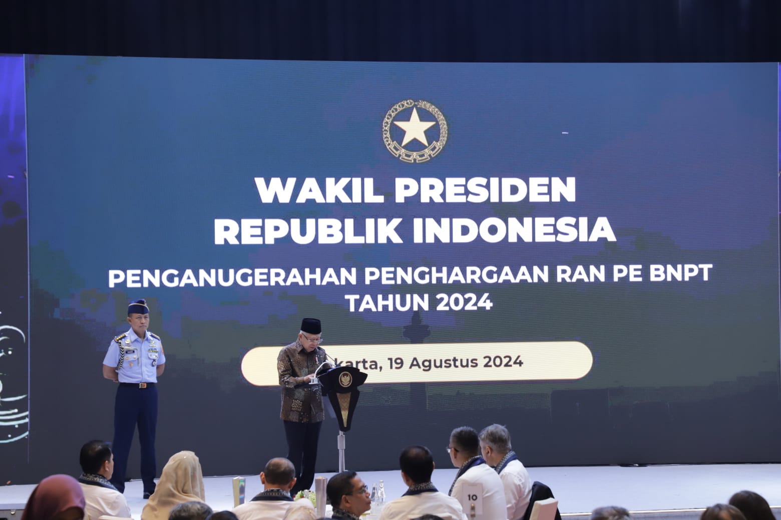 “Alhamdulillah hari ini Pemerintah Kabupaten Bogor menerima penghargaan dalam rangka rencana aksi nasional penanggulangan ekstrimisme tahun 2024 yang dilaksanakan oleh BNPT,” tutur Asmawa Tosepu.