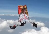 Aksi Terjun Payung Polri Kibarkan Potret Raksasa Jokowi dan Prabowo